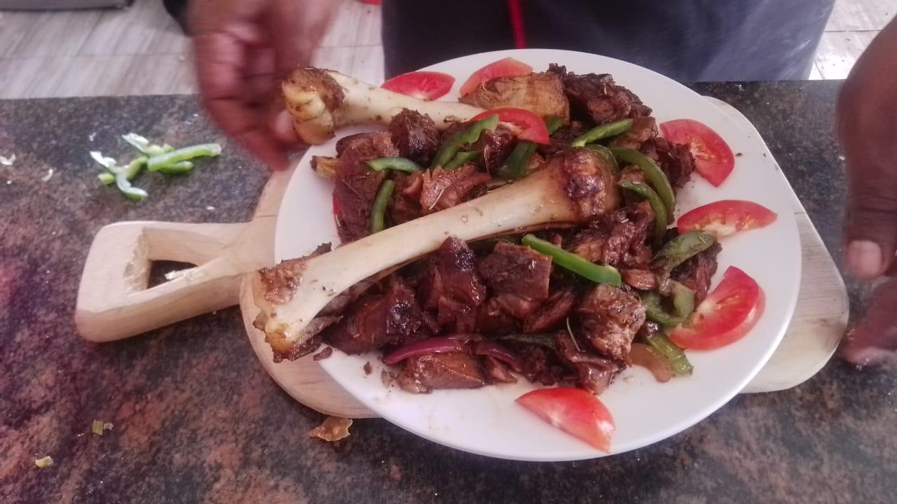 Traditional-style roasted goat or beef, seasoned with local spices and served with kachumbari salad